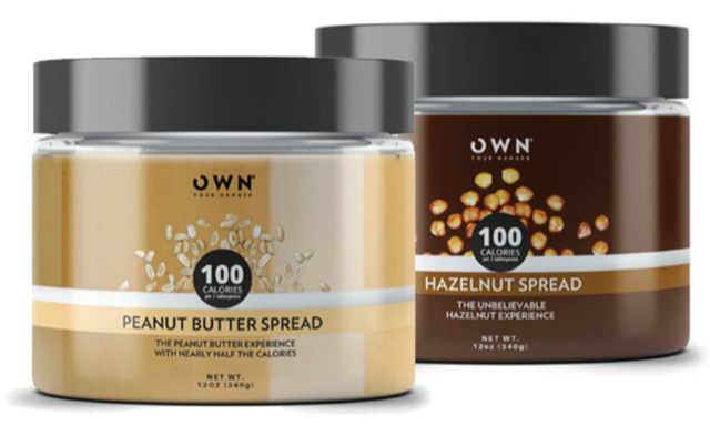 Formulated with EPG alternative fat technology, OWN Your Hunger spreads have roughly half the calories of regular peanut butter and hazelnut spreads. Photo courtesy of OWN Your Hunger